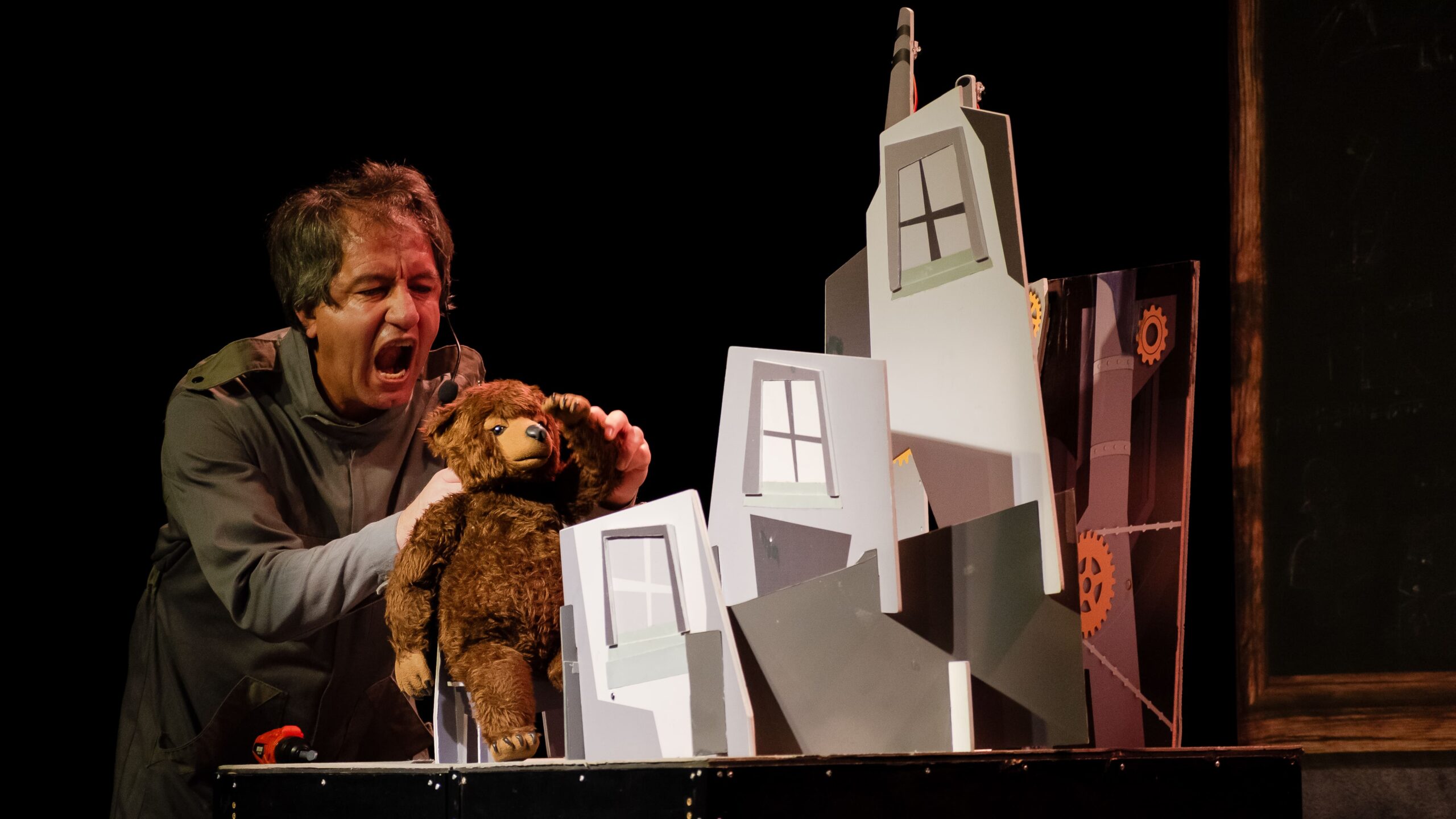 Espectáculo de teatro de animación (objetos y títeres) destinado a un público familiar que se presenta sobre una mesa/ escenario animado por un solo actor.